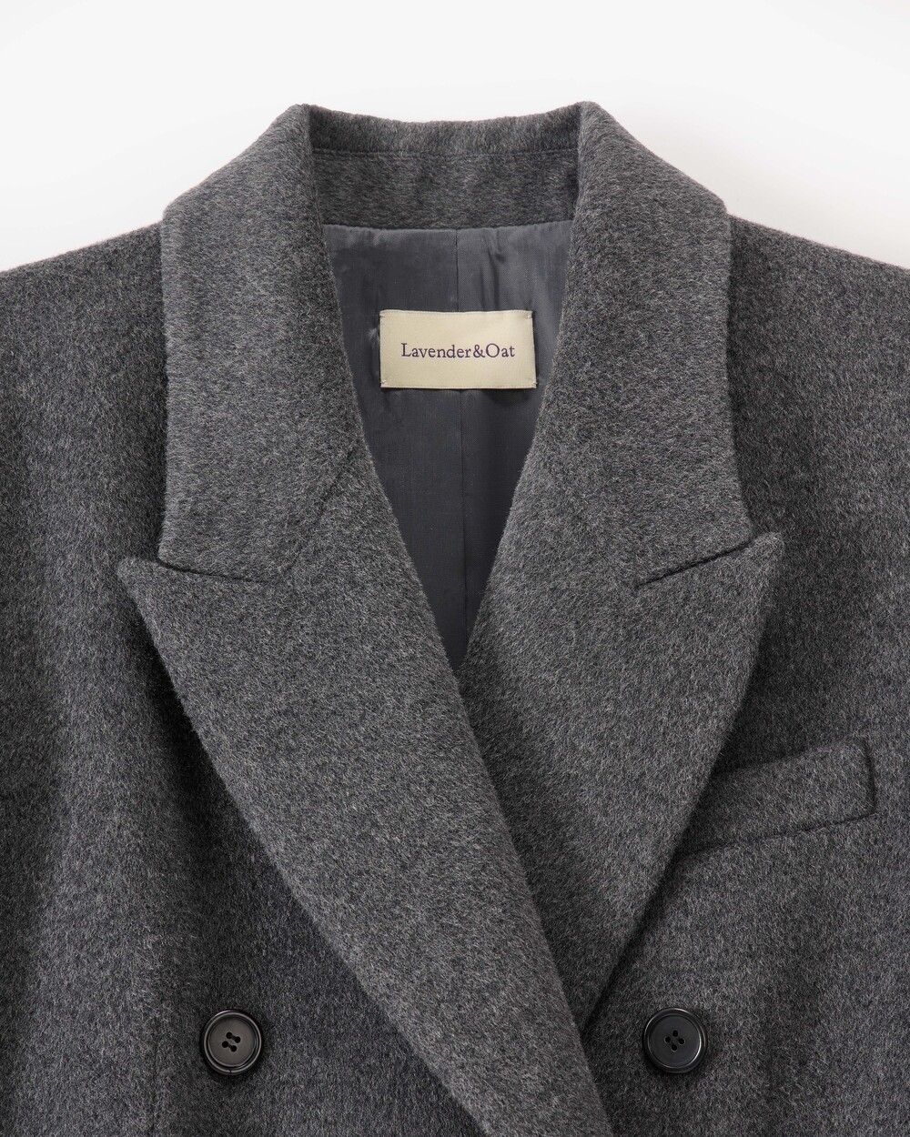 매트한 결감과 곧게 떨어지는 실루엣이우아하게 완성되는 라벤더앤오트 시그니처 더블 브레스티드 코트입니다. 캐시미어 10% + 메리노울 90% 블렌딩으로 기분 좋은 부드러움과 따스함을 그대로 담았으며, 한겨울까지 포근하면서도 흐트러짐 없이 선명한 핏을 유지합니다. 과하지 않은 롱 스트레이트 라인으로 슬림한 실루엣을 연출하고, 어깨와 라펠의 구조적인 쉐입이 단정하고 클래식한 분위기를 더합니다. 라벤더앤오트 로고 각인이 담긴 천연 소뿔단추를 이용한 더블 버튼 디테일과 무겁지 않은 중량감은 전체적인 무드를 더욱 세련되게 정리해줍니다. 데일리, 출근, 여행, 저녁 모임까지 어디에나 자연스럽게 스며드는 타임리스 코트입니다.