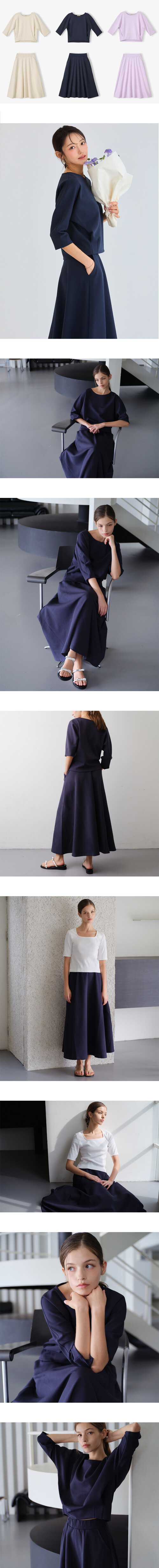 [셋업] 데일리 소프트 7부맨투맨&밴딩스커트 (네이비)