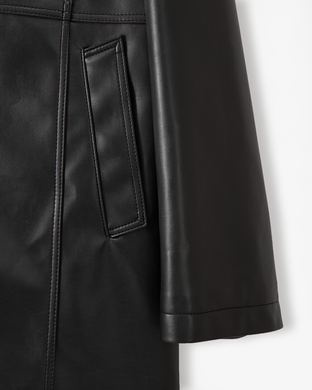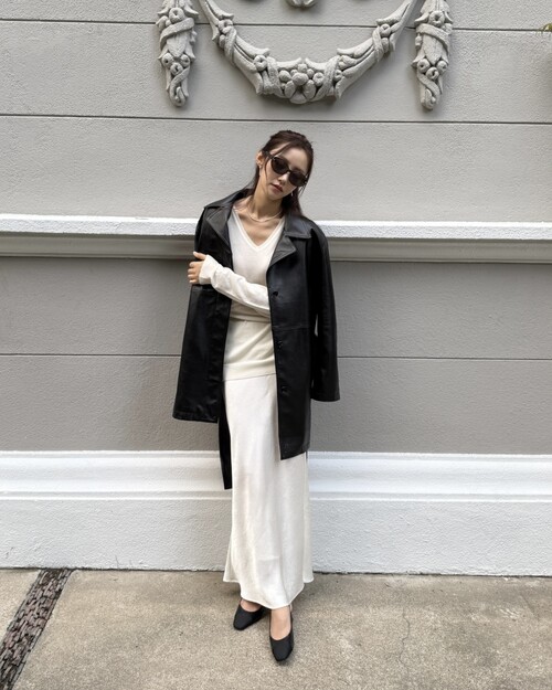 여성스러운 무드를 잃지 않는 미디 길이의 실루엣과 매끄럽게 흐르는 광택감이 매력적인 메종 레더 트렌치입니다. 부드럽고 유연한 에코 레더 소재로 가볍고 편안하게 걸치기 좋으며, 시간이 지나도 흐트러짐 없이 구김이 적은 단정한 핏을 유지합니다. 데님에 후드, 맨투맨에 걸쳐서 캐주얼한 룩으로 입어도 예쁘고 머메이드 스커트에 V넥 니트나 블라우스로 코디해 클래식한 무드로도 멋진, 데일리룩으로나 특별한 날 모두 착용하기 좋은 트렌치입니다. 허리 벨트로 라인을 잡아주면 한층 더 여성스러운 실루엣이 완성됩니다. 넉넉하고 실용적인 포켓주머니에 담백한 디테일과 조용한 존재감을 지닌, 우아한 감성의 메종 레더 트렌치.