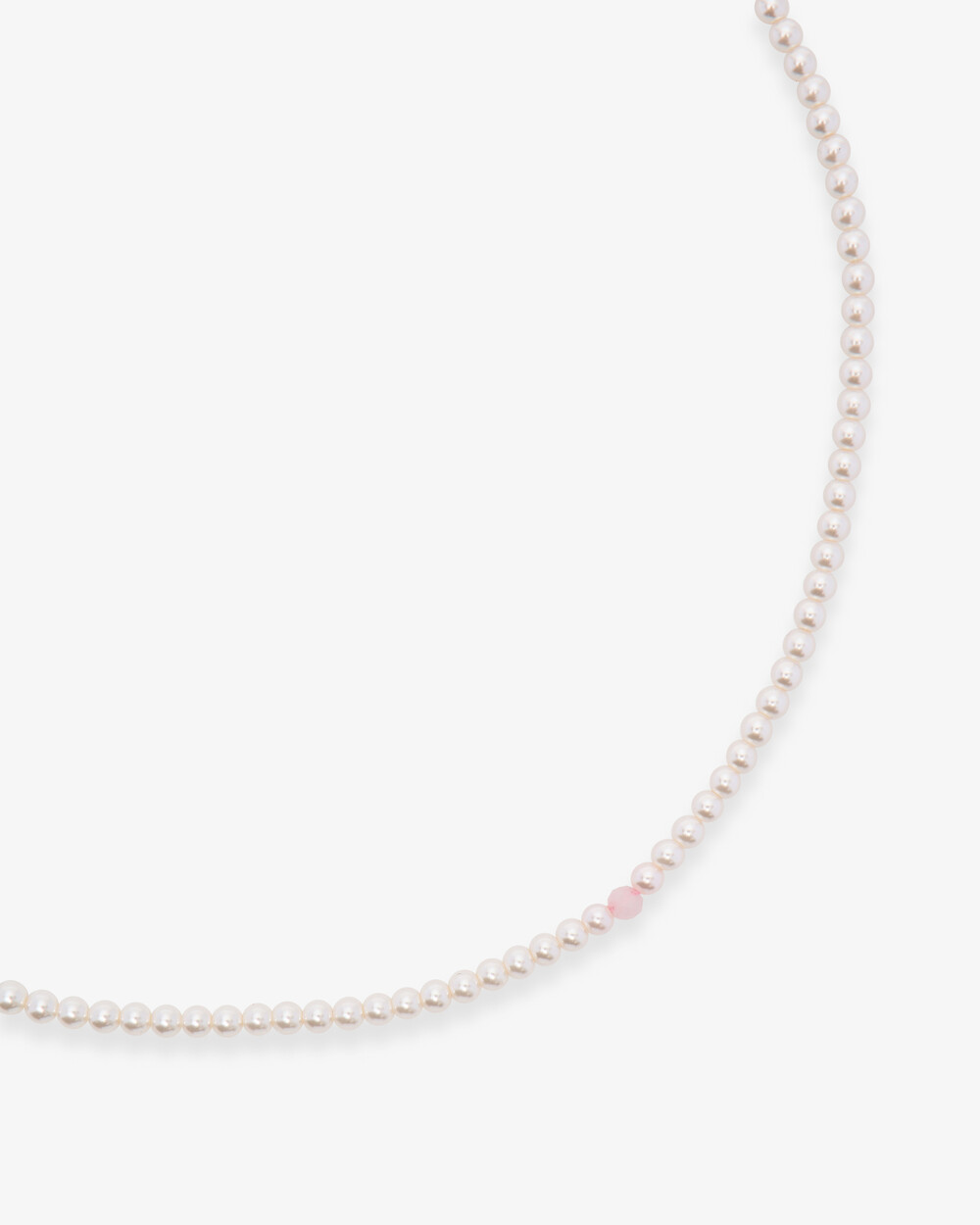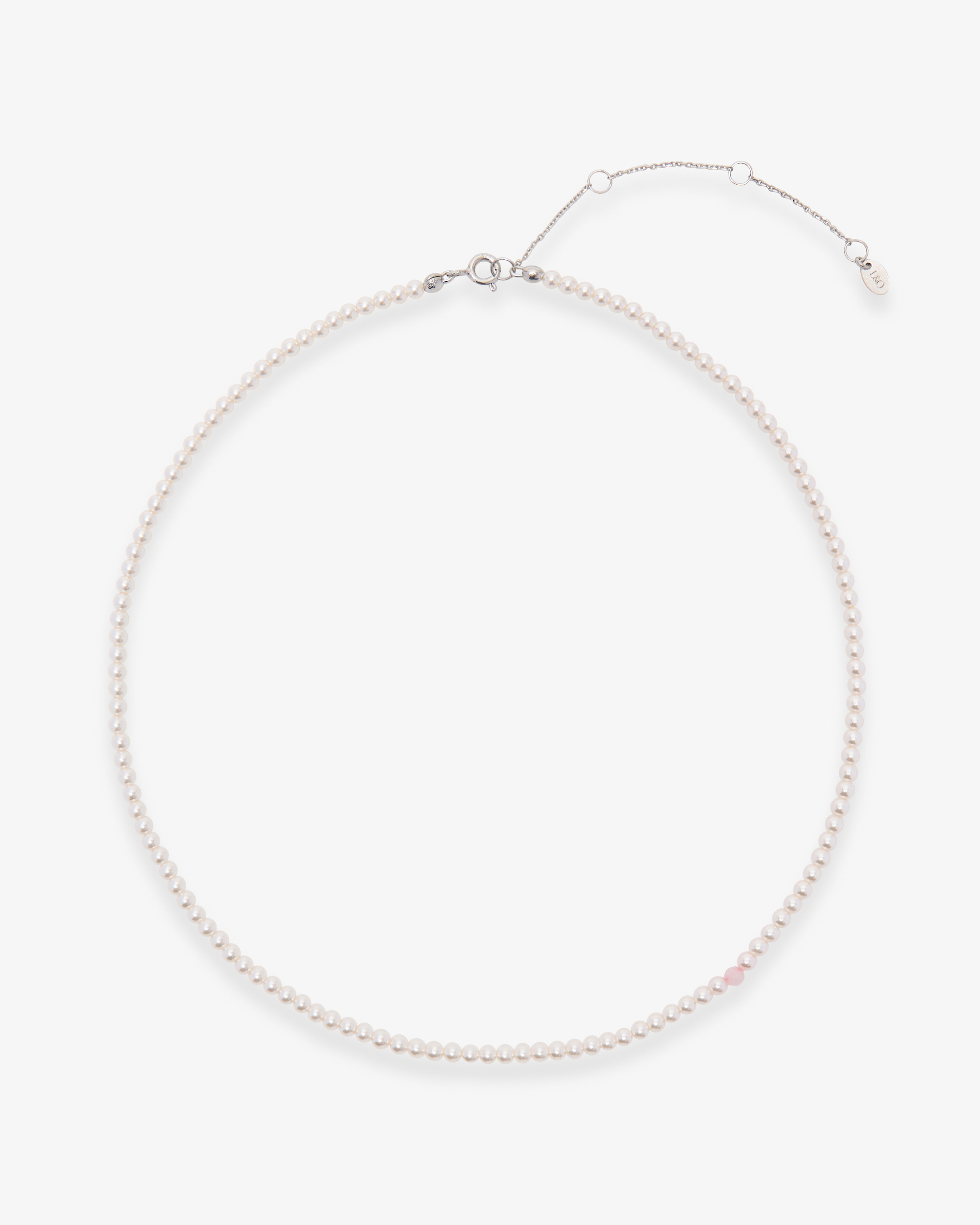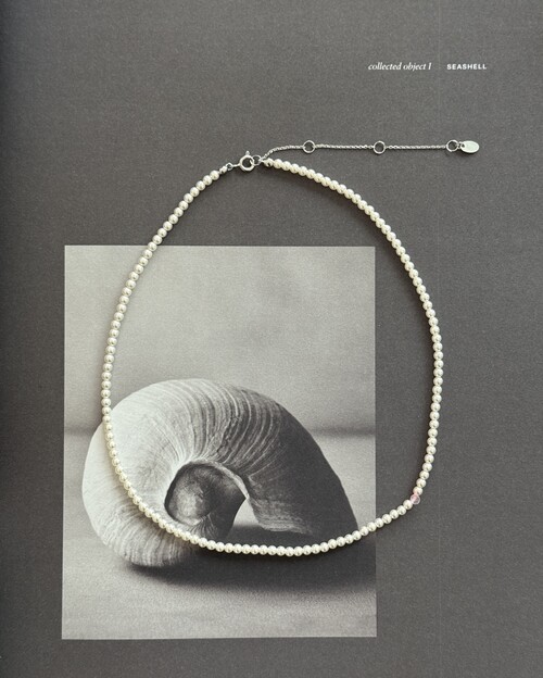 화사한 무드 가득 담겨있는 라앤오만의 크리스탈 진주 비드 네크리스.