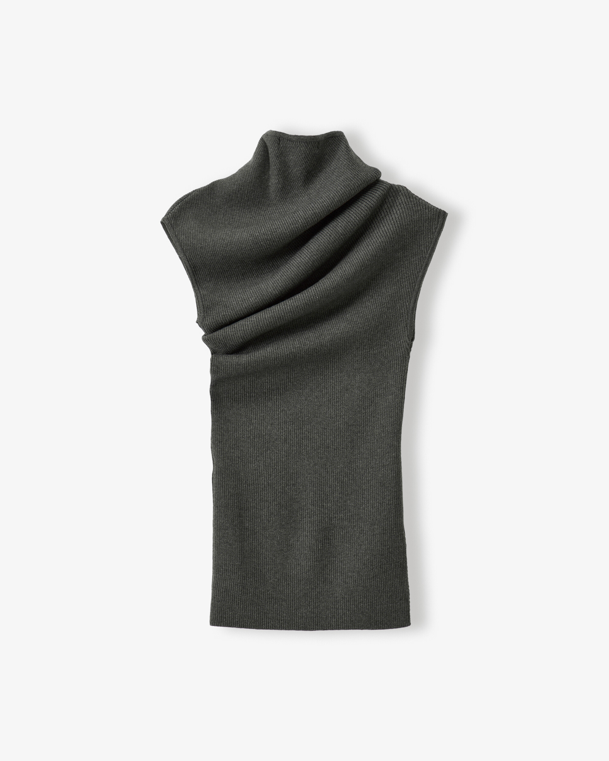 세렌 리브 하이넥 니트 탑은 가볍고 부드럽게 감기는 착용감이 특징입니다. 유연한 텍스처가 몸에 자연스럽게 흐르면서도 적당한 힘이 있어 실루엣을 깔끔하게 잡아줍니다. 편안하게 감싸는 하이넥 라인에 자연스럽게 떨어지는 드레이프가 더해져, 단 한 벌만으로도 우아한 분위기를 완성합니다. 목선과 상체 라인을 부드럽게 감싸 고급스럽고 세련된 실루엣을 연출합니다. 소매가 없는 미니멀한 디자인으로 이너로도, 단독으로도 활용도가 높아 자켓, 가디건, 코트 속에 이너로 매치하면 부해 보임 없이 깔끔하게 떨어지고, 단독 착용 시에는 드레이프 디테일이 자연스럽게 포인트가 됩니다. 라벤더앤오트의 'Calm Elegance'를 담아낸 아이템입니다.