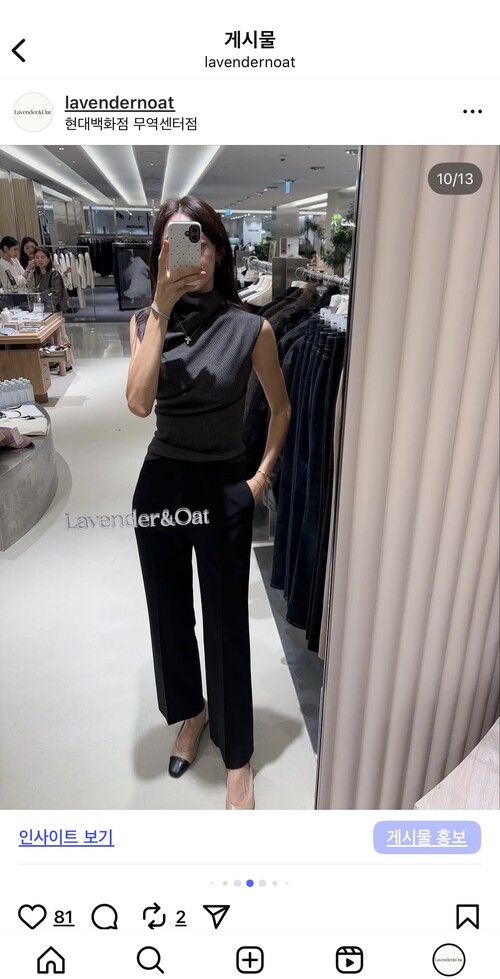 세렌 리브 하이넥 니트 탑은 가볍고 부드럽게 감기는 착용감이 특징입니다. 유연한 텍스처가 몸에 자연스럽게 흐르면서도 적당한 힘이 있어 실루엣을 깔끔하게 잡아줍니다. 편안하게 감싸는 하이넥 라인에 자연스럽게 떨어지는 드레이프가 더해져, 단 한 벌만으로도 우아한 분위기를 완성합니다. 목선과 상체 라인을 부드럽게 감싸 고급스럽고 세련된 실루엣을 연출합니다. 소매가 없는 미니멀한 디자인으로 이너로도, 단독으로도 활용도가 높아 자켓, 가디건, 코트 속에 이너로 매치하면 부해 보임 없이 깔끔하게 떨어지고, 단독 착용 시에는 드레이프 디테일이 자연스럽게 포인트가 됩니다. 라벤더앤오트의 'Calm Elegance'를 담아낸 아이템입니다.