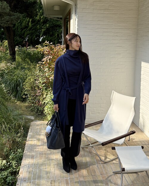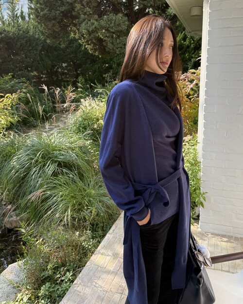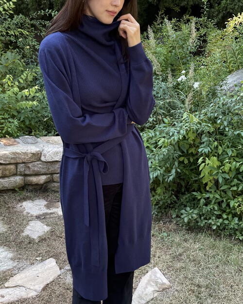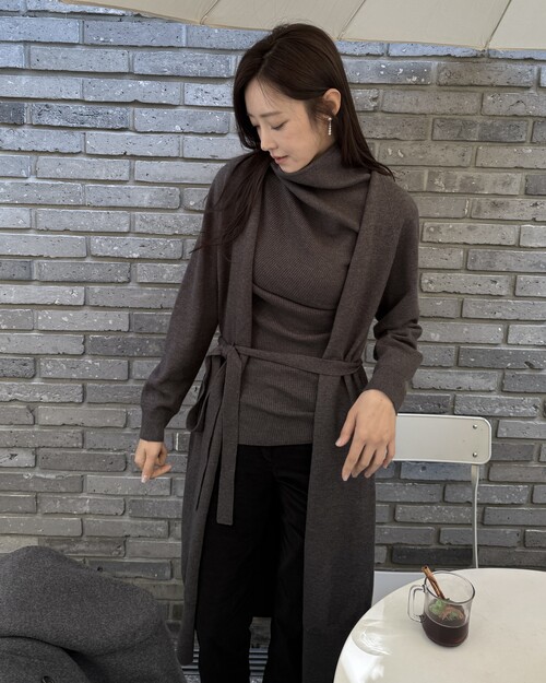 세렌 롱 니트 가디건은 아크릴과 나일론을 혼방해 가볍고 부드러운 착용감이 돋보이는 롱 가디건입니다. 허리끈이 함께 구성되어 두가지 무드로 스타일링할 수 있습니다. (오픈 스타일로 연출해서 내추럴하고 여유롭게, 벨트를 묶어 허리를 슬림하게 잡아 세련된 아웃핏으로 연출.) 몸에 자연스럽게 흘러 전체 실루엣을 여리하고 단정하게 정리해줍니다. 무릎 아래로 떨어지는 롱 기장은 입는 순간 체형을 자연스럽게 커버해주며 슬림하고 길어 보이는 레그 라인을 연출합니다. 세렌 리브 하이넥 니트 탑과 함께 매치해주어 톤온톤 코디를 즐겨보세요.