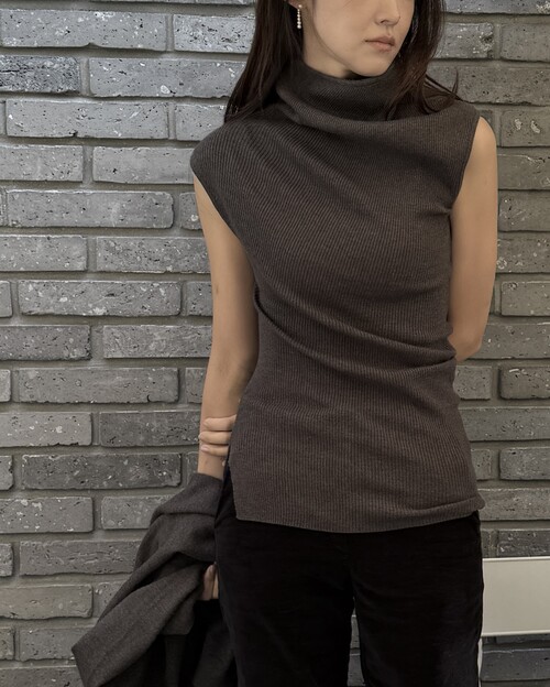 ∙세렌 리브 하이넥 니트 탑