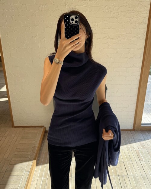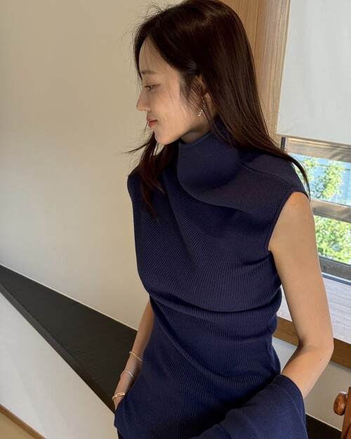 세렌 리브 하이넥 니트 탑 (네이비)