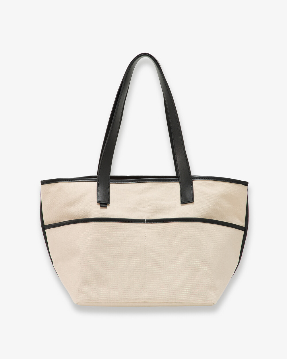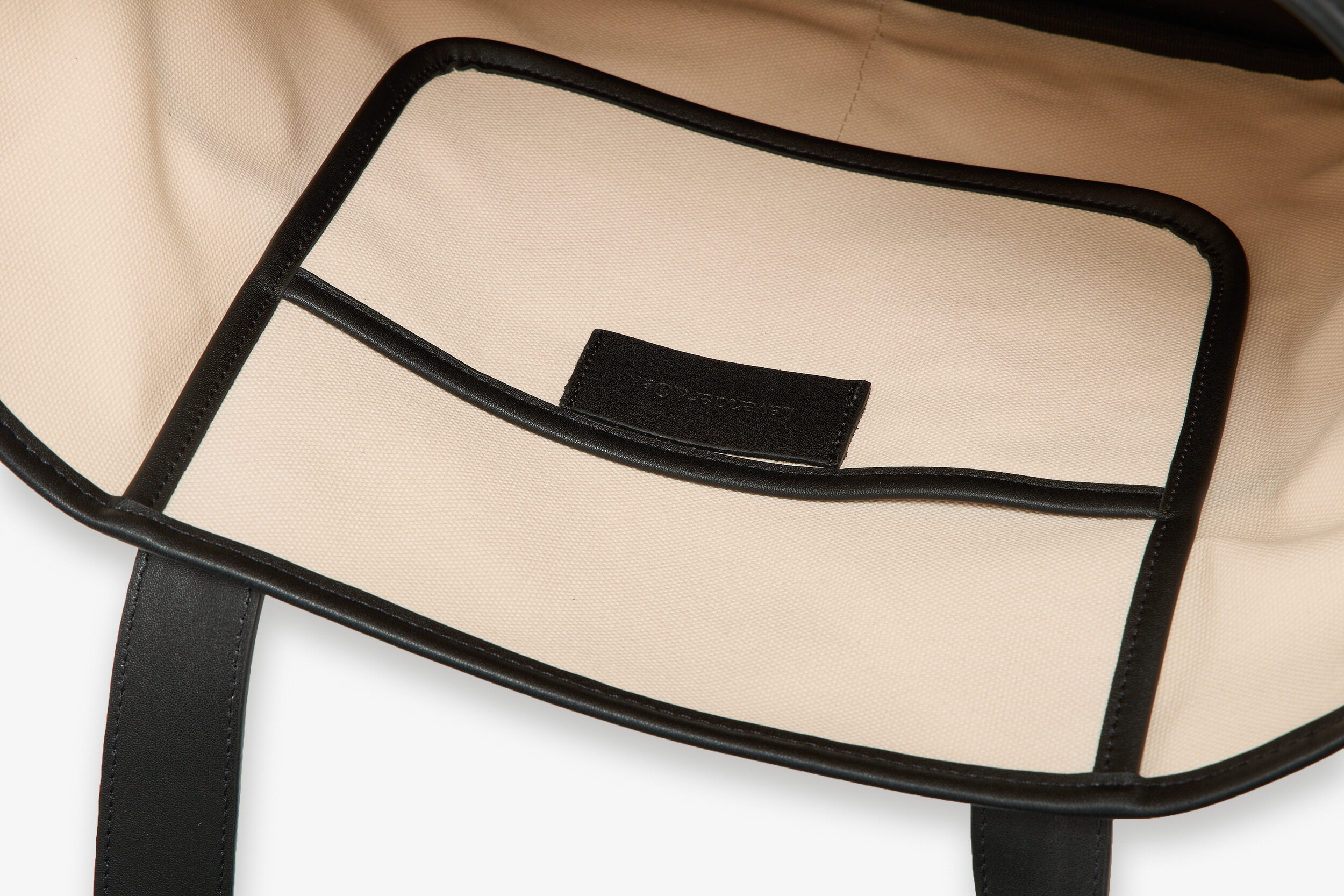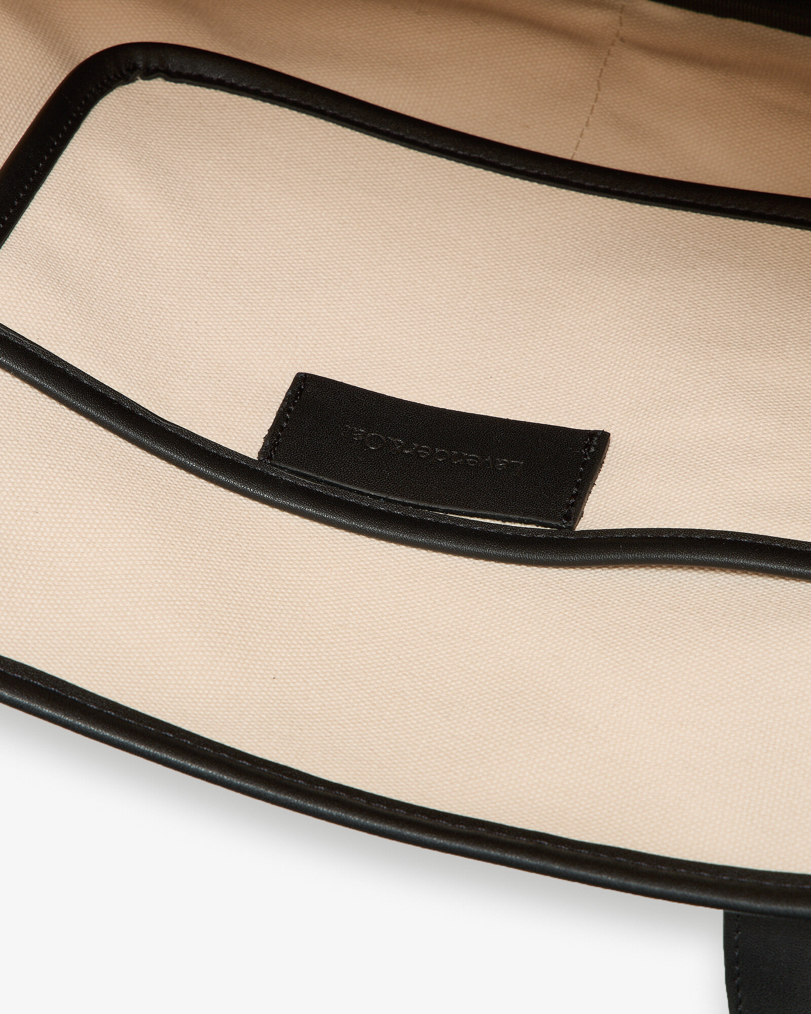 라벤더앤오트에서 제작한, 내구성이 뛰어난 캔버스에 천연 소가죽 핸들을 더한 토트백입니다.