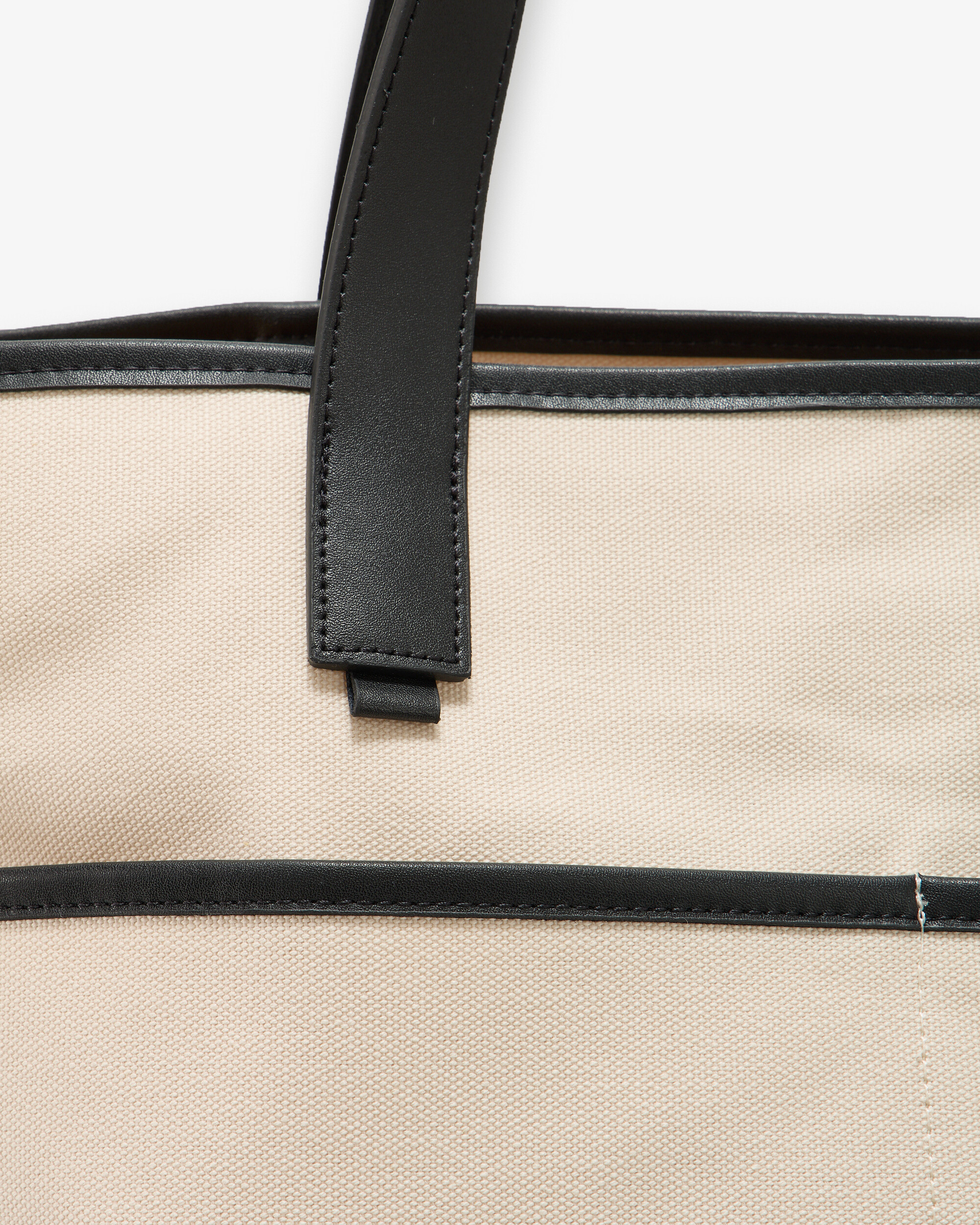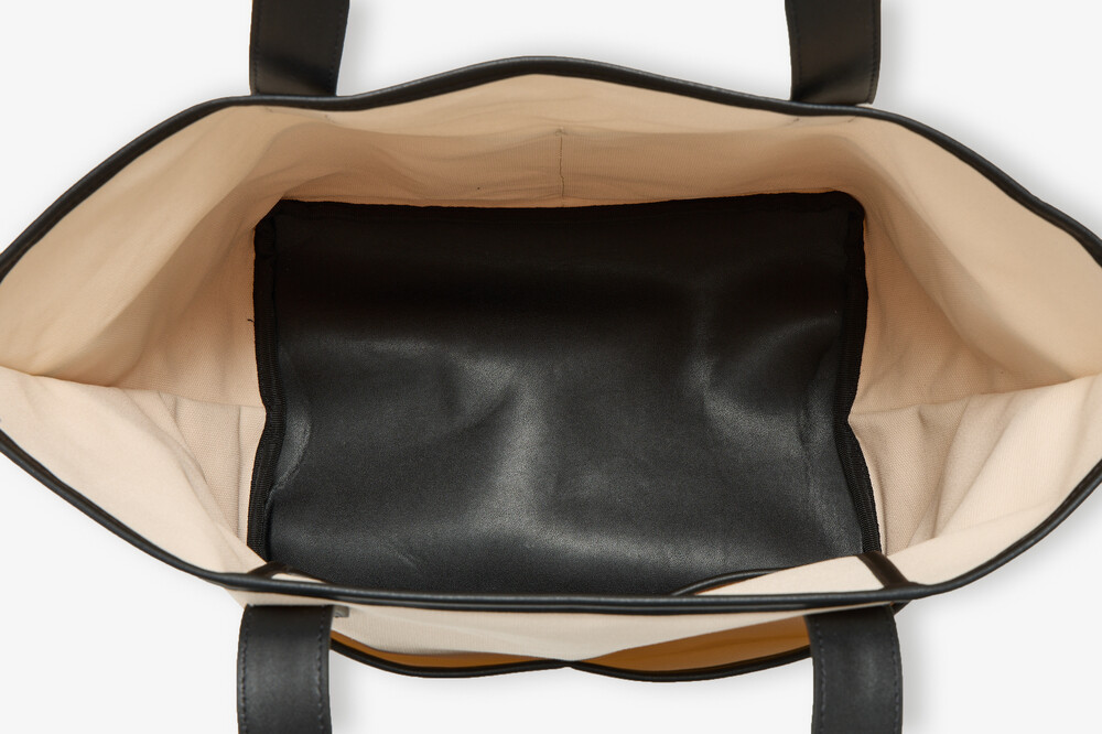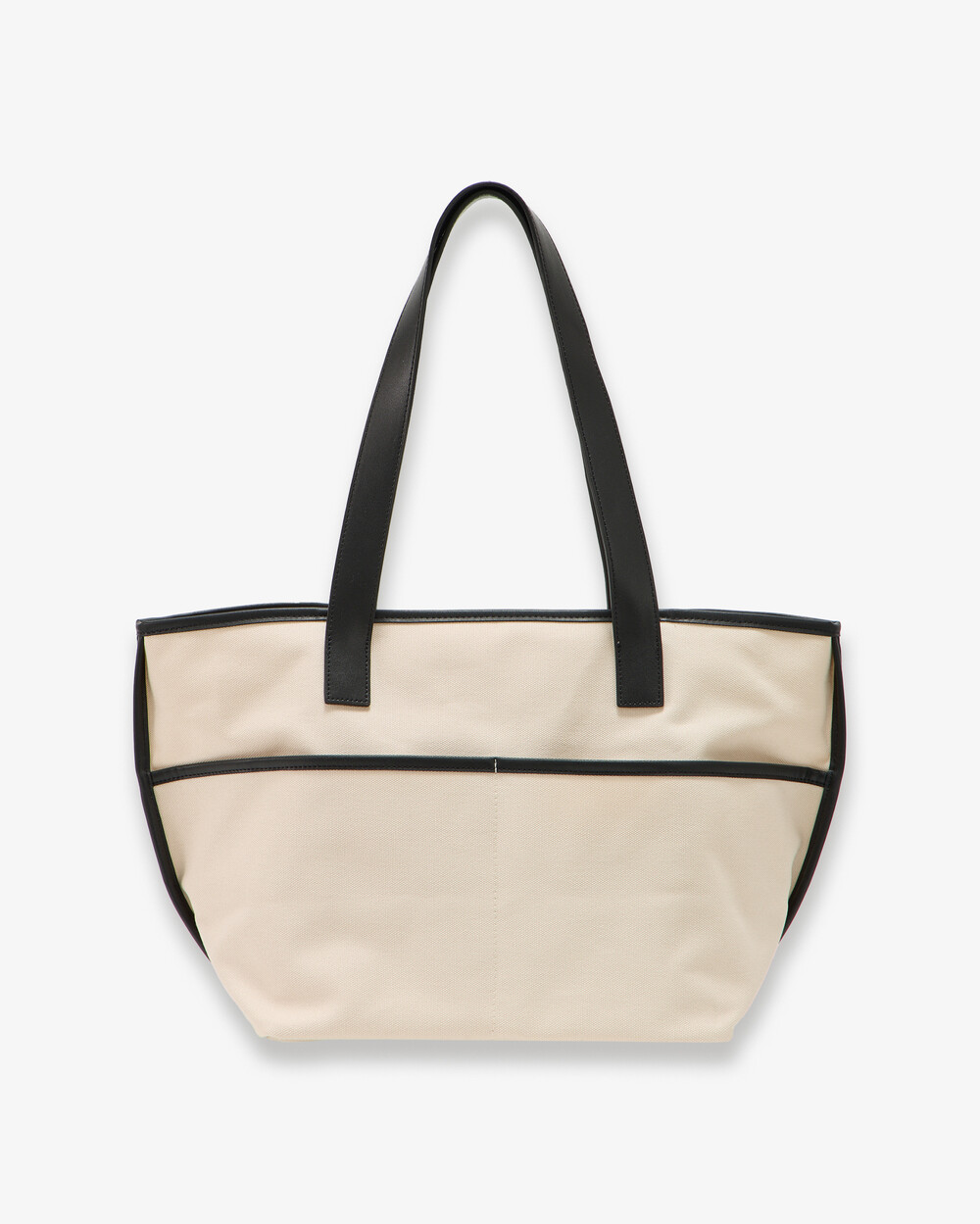 라벤더앤오트에서 제작한, 내구성이 뛰어난 캔버스에 천연 소가죽 핸들을 더한 토트백입니다.